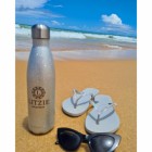 A garrafa térmica prata Litzie, mantém a temperatura até 24h fria e até 12h quente.